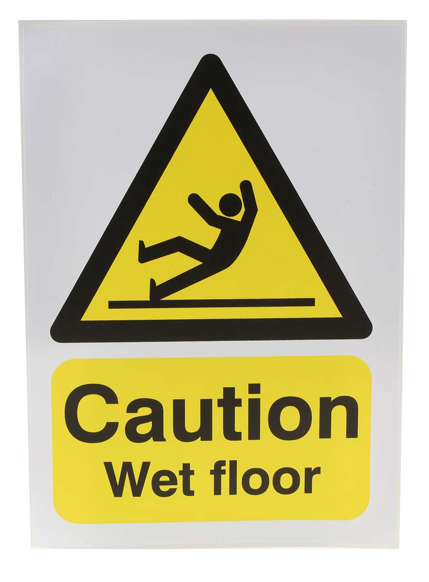 This is Wet Floor Sign with English Text Vinyl 148 x 210mm Hazard Warning manufactured by RS Pro. The manufacturer part number is 763-1538. It has a/an label type sign . Its text message shows caution - wet floor . It is created for general hazard type hazard . It has a decent black/yellow colour. The product is made from highly stable and reliable vinyl. In addition, the height is 210 mm. Furthermore, the product is 148mm wide. Additionally, it is self-adhesive yes . It includes a symbol and text . However, its text language is english . In addition, it displays wet floor sign description .