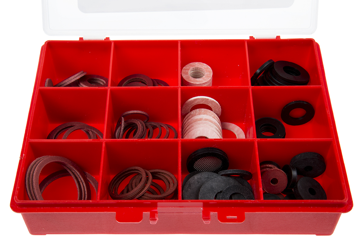 This is Masefield Epson 100 x Washer & Seal Kit 12 Compartments Kit Contents 1/2 in Ball Valve Seat Fibre Washer 1/2 in manufactured by RS PRO. The manufacturer part number is 400-8317. It has 103 included quantity . It has about 12 compartments . This versatile kit contents include 1/2 in ball valve seat fibre washer, 1/2 in shower hose rubber washer, 1/2 in top of tap body fibre washer, 15 mm fibre tap connector washer, 15 mm flexible tap connector washer, 22 mm fibre tap connector washer, 22 mm flexible tap connector washer, 3/4 in ball valve seat fibre washer, 3/4 in top of tap body fibre washer, 3/4 in washing machine hose rubber washer, bath shower mixer diverter washer, draw off cock rubber & fibre washer components.