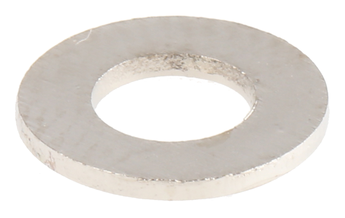 This is Nickel Plated Brass Plain Washer 0.8mm Thickness M4 manufactured by RS Pro. The manufacturer part number is 483-0653. A quality product with a nice nickel plated finish. The product complies with all safety standards, such as din 125a. Moreover, its inside diameter is 4.3mm. The product is made from highly stable and reliable brass. It is 0.8mm thick. It is created for an m4 size screw/bolt . The product has 9mm external diameter. It includes a high-quality plain form a type washer .