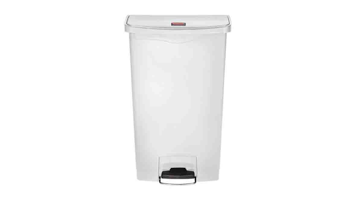 This is Slim Jim 68L White Pedal Waste Bin manufactured by Rubbermaid Commercial Products. The manufacturer part number is 1883559. Additionally, it has a/an pedal type lid . The product comes in 802.6mm depth. The module has the capacity of 68l. It has a decent white colour. It is assigned with a trade name of slim jim.