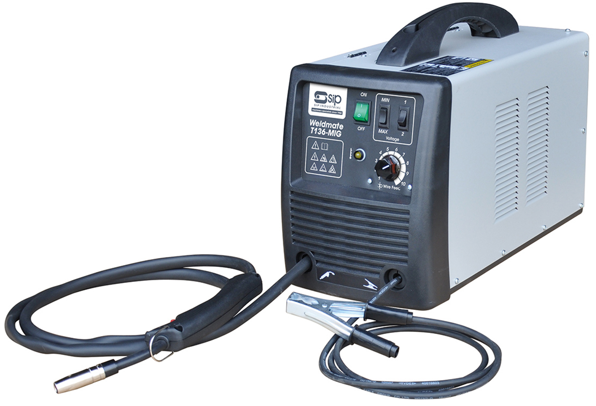 This is 230V MIG Welder 80A manufactured by SIP. The manufacturer part number is 05736. It has a/an mig welder welder type . The typical product's weight is 22kg. It carries 30 → 135a output current. It has a model number t136. Features a 18v output voltage. Features 230v supply voltage.
