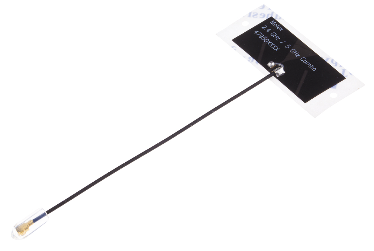 This is - PCB WiFi (Dual Band) Antenna Adhesive Mount (2.4 GHz 5 GHz) Micro-Coaxial RF Connector manufactured by Molex. The manufacturer part number is 47950-0011. The frequency range includes 2.4 ghz, 5 ghz. The product is available in adhesive mount configuration. The typical product's weight is 0.7g. Additionally, it has a/an adhesive type antenna mounting . It has an antenna with omnidirectional directivity . The product 47950, is a highly preferred choice for users. It has a/an bluetooth (ble), wifi RF protocol . micro-coaxial rf Connector type offer robust functionality. Furthermore, the product is 15.9mm wide. Its antenna is of pcb physical form . The 2.27 dbi, 4.9 dbi is the gain value of a bespoke product. Furthermore, the cable has a 100mm of length.