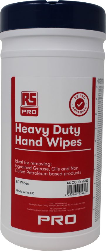 This is Wet Hand Wipes for General Cleaning Use Tub of 80 manufactured by RS PRO. The manufacturer part number is 224-6650. Applications Information involves general cleaning. It contains 80 wipes per pack . It is featured with hand wipes . It is wet . The package is a sort of tub. It has a decent orange colour.