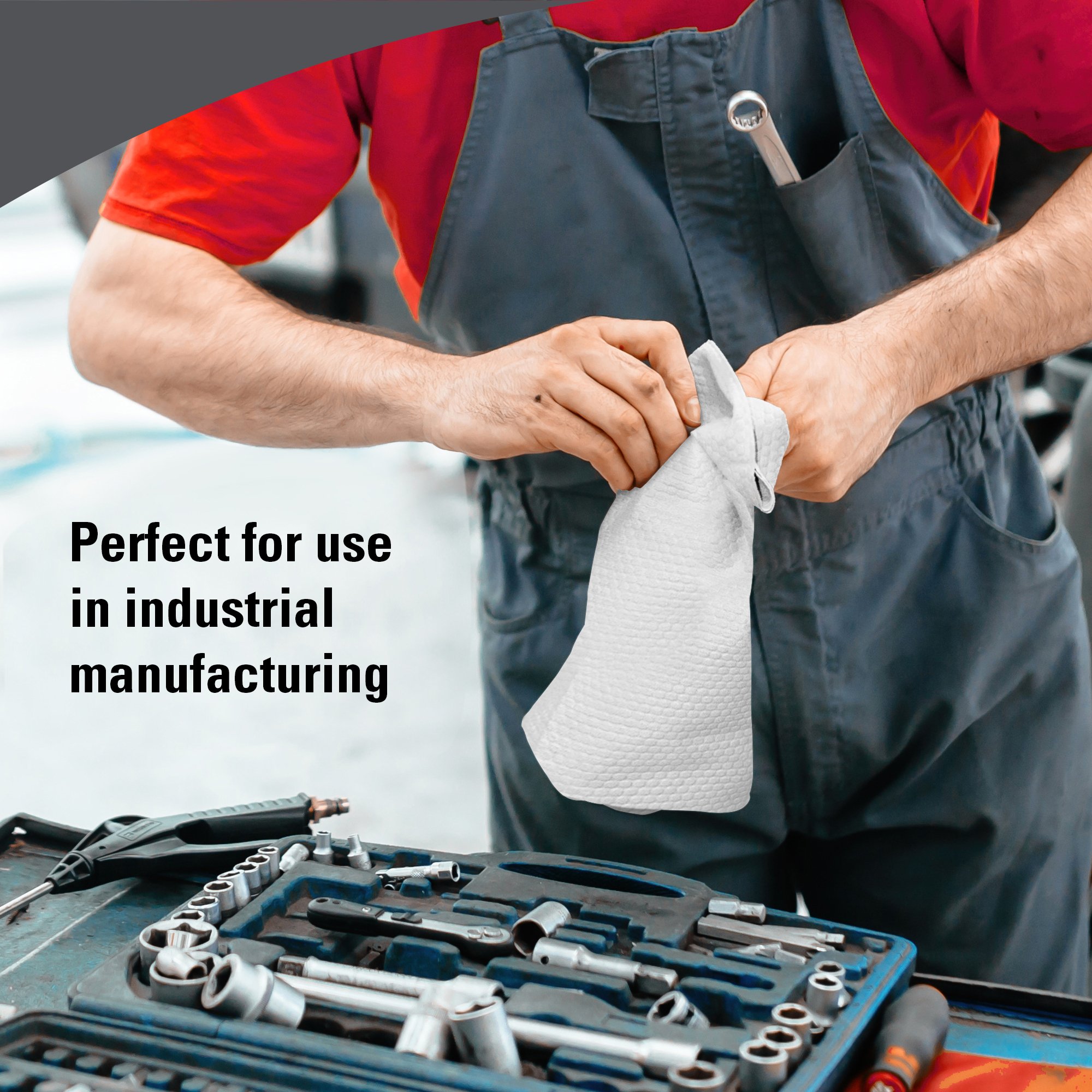 This is Power Clean Heavy Duty Cloths Dry Heavy duty Wipes Quarter Fold of 50 305 x 317mm manufactured by WYPALL. The manufacturer part number is 8388. It is assigned with a trade name of power clean heavy duty cloths 8388. It is designed for repeat use . Applications Information involves industrial cleaning. It has a decent white colour. It has 1 ply . It is dry . It features wypall range. The package is a sort of quarter fold. Its wiper is 305 x 317mm in size . It contains 50 wipes per pack .