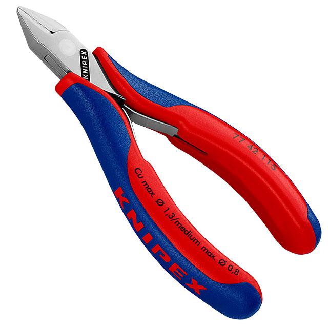 This is manufactured by Knipex Tools LP. The manufacturer part number is 77 42 115. The knipex tools lp's product offers user-desired applications. The product has an integral 4.50" (114.3mm) overall length. The module has the capacity of 0.8mm dia medium wire, 0.4 ~ 1.2mm dia soft wire. The splendid features of the product include soft grips. It is assigned with possible HTSUS value of 8203.20.6060. In addition, it is vendor undefined. In addition, bulk is the available packaging type of the product. It is a oval product with unique specifications. Its typical moisture sensitivity level is 1 (unlimited). It has a long 2 weeks standard lead time. It has a bevel cut edge. It comes in side (diagonal) configuration. The product is designated with the ear99 code number.