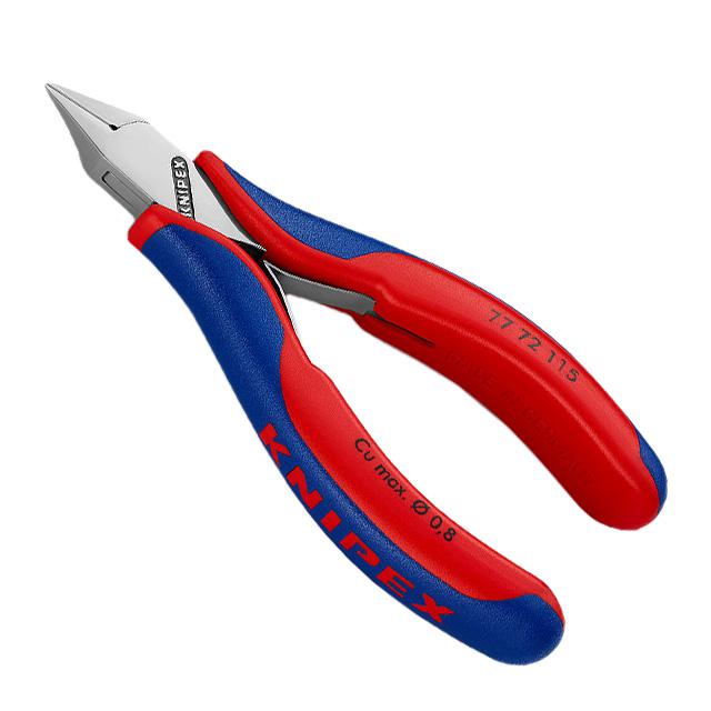 This is manufactured by Knipex Tools LP. The manufacturer part number is 77 72 115. The knipex tools lp's product offers user-desired applications. The product has an integral 4.50" (114.3mm) overall length. The module has the capacity of 0.4 ~ 0.8mm dia soft wire. The splendid features of the product include soft grips. It is assigned with possible HTSUS value of 8203.20.6060. In addition, it is vendor undefined. In addition, bulk is the available packaging type of the product. It is a oval product with unique specifications. Its typical moisture sensitivity level is 1 (unlimited). It has a long 2 weeks standard lead time. It has a bevel cut edge. It comes in side (diagonal) configuration. The product is designated with the ear99 code number.