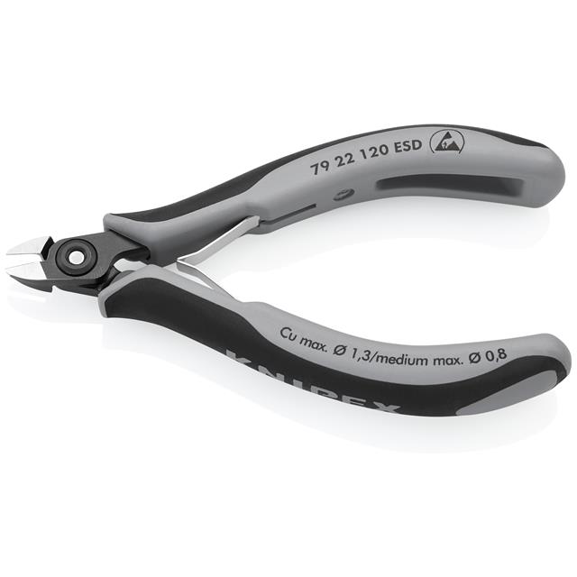 This is manufactured by Knipex Tools LP. The manufacturer part number is 79 22 120 ESD. The module has the capacity of 0.8mm dia medium wire, 0.4 ~ 1.2mm dia soft wire. It is assigned with possible HTSUS value of 8203.30.0000. It comes in side (diagonal) configuration. The product has an integral 4.75" (120.7mm) overall length. In addition, it is vendor undefined. The knipex tools lp's product offers user-desired applications. Its typical moisture sensitivity level is 1 (unlimited). It has a long 2 weeks standard lead time. The splendid features of the product include esd safe, soft grips. In addition, bulk is the available packaging type of the product. It is a oval product with unique specifications. It has a bevel cut edge. Moreover, it corresponds to 79 22, a base product number of the product. The product is designated with the ear99 code number.