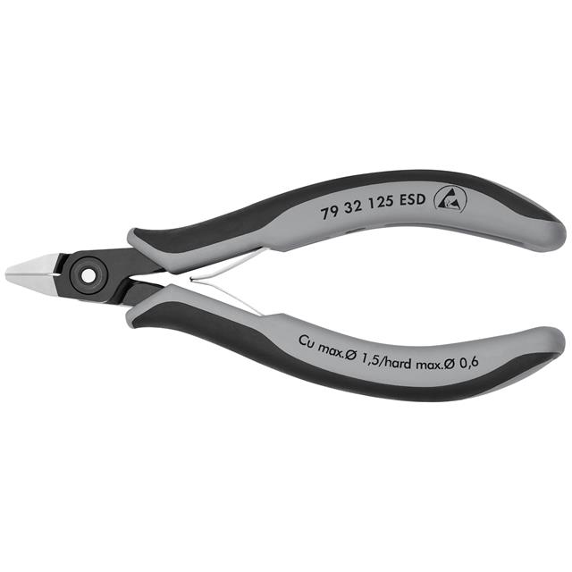 This is manufactured by Knipex Tools LP. The manufacturer part number is 79 32 125 ESD. The knipex tools lp's product offers user-desired applications. The product has an integral 5.00" (127.0mm) overall length. The module has the capacity of 0.4mm dia hard wire, 1.2mm dia medium wire, 0.4 ~ 1.6mm dia soft wire. The splendid features of the product include esd safe, soft grips. It is assigned with possible HTSUS value of 8203.20.6060. In addition, it is vendor undefined. Its typical moisture sensitivity level is 1 (unlimited). In addition, bulk is the available packaging type of the product. It is a oval product with unique specifications. It has a long 2 weeks standard lead time. It has a bevel cut edge. It comes in side (diagonal) configuration. Moreover, it corresponds to 79 32, a base product number of the product. The product is designated with the ear99 code number.