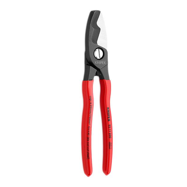 This is manufactured by Knipex Tools LP. The manufacturer part number is 95 11 200. The knipex tools lp's product offers user-desired applications. The product has an integral 8.00" (203.2mm) overall length. The module has the capacity of 2/0 awg. The splendid features of the product include adjustable. It is assigned with possible HTSUS value of 8203.20.6060. In addition, it is vendor undefined. Its typical moisture sensitivity level is 1 (unlimited). In addition, bulk is the available packaging type of the product. It is a straight product with unique specifications. It has a long 2 weeks standard lead time. It has a shear cut edge. It comes in cable configuration. The product is designated with the ear99 code number.