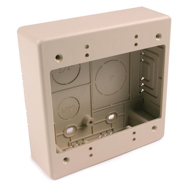 This is manufactured by HellermannTyton. The manufacturer part number is TSRPI-JBD. It is assigned with possible HTSUS value of 8536.90.8530. It is shipped in bulk package . It has a classic ivory colour. The product tsrp, is a highly preferred choice for users. The product is rohs compliant. It is a type of junction box - 2 gang, power rated with adhesive accessory. Its typical moisture sensitivity level is 1 (unlimited). Moreover, it corresponds to tsrpi, a base product number of the product. It has a long 2 weeks standard lead time. The product is suitable for use with tsrp power rated surface raceway. The product is designated with the ear99 code number.