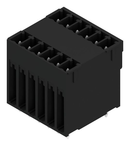 This is manufactured by Weidmuller. The manufacturer part number is 1030990000. The product contains 12 contacts. In addition, male is the available "Gender" of the product. It comes in 2 of rows. Moreover, the product is 3.81mm. It has typical 12 weeks of manufacturer standard lead time. It features 12 position terminal block header, male pins, shrouded (4 side) 0.150" (3.81mm) vertical through hole. Moreover, it has solder terminal style. The product also features robust liquid crystal polymer (lcp), glass filled housing material. The product has -50°c ~ 120°c operating temperature range. It comes in header, male pins, shrouded (4 side) configuration. The product carries possible position value of 12. The typical tail length of the product is [Contact Tail Lenght]. 0.862" (21.89mm) of insulation height. It carries ul94 v-0 of material flammability rating. The weidmuller's product offers user-desired applications. The product carries 2 levels. An IEC current of 17.5a. The product has a vertical of a header orientation. While 300v is the typical voltage of the product. The mating finish of the contact is tin. The nominal voltage of the product is 320v. It is IP rated with ip20. The product is available in through hole configuration. It has a classic black colour. The product omnimate sc, is a highly preferred choice for users. It has 6 positions each level. In addition, bulk is the available packaging type of the product. The typical current includes 10a. Moreover, the product is 0.150" (3.81mm). The product is made from sturdy copper alloy materials.