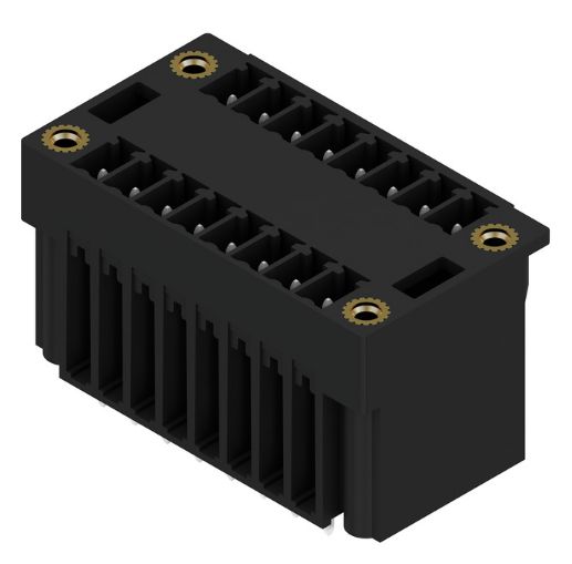 This is manufactured by Weidmuller. The manufacturer part number is 1031540000. The product contains 16 contacts. In addition, male is the available "Gender" of the product. It comes in 2 of rows. Moreover, the product is 3.81mm. It has typical 12 weeks of manufacturer standard lead time. It features 16 position terminal block header, male pins, shrouded (4 side) 0.150" (3.81mm) vertical through hole. Moreover, it has solder terminal style. The product also features robust liquid crystal polymer (lcp), glass filled housing material. The product has -50°c ~ 120°c operating temperature range. It comes in header, male pins, shrouded (4 side) configuration. The product carries possible position value of 16. The typical tail length of the product is [Contact Tail Lenght]. 0.862" (21.89mm) of insulation height. It carries ul94 v-0 of material flammability rating. The weidmuller's product offers user-desired applications. The product carries 2 levels. An IEC current of 17.5a. The product has a vertical of a header orientation. While 300v is the typical voltage of the product. The mating finish of the contact is tin. The nominal voltage of the product is 320v. It is IP rated with ip20. The splendid features of the product include mating and mounting flange. The product is available in through hole configuration. It has a classic black colour. The product omnimate sc, is a highly preferred choice for users. It has 8 positions each level. In addition, bulk is the available packaging type of the product. The typical current includes 10a. Moreover, the product is 0.150" (3.81mm). The product is made from sturdy copper alloy materials.