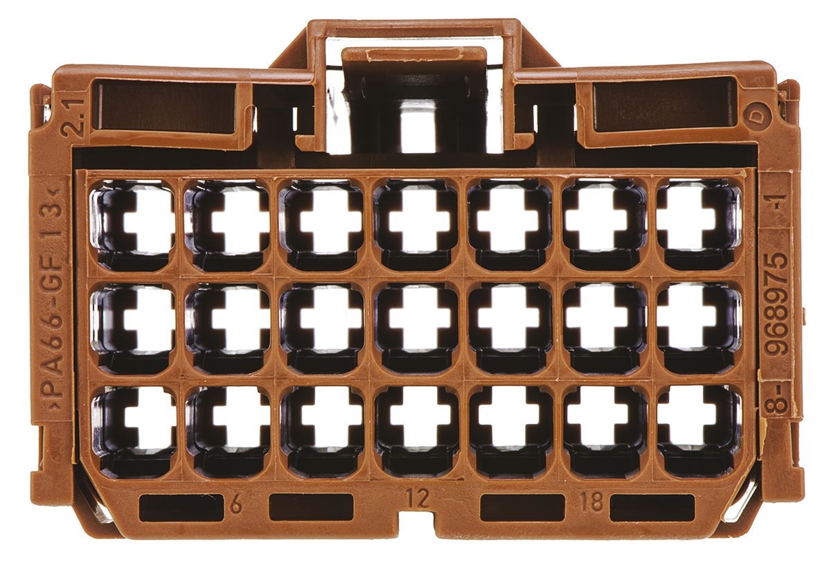 This is AMP MCP 2.8 5.5mm Pitch 21 Way 3 Row Female Connector Housing manufactured by TE Connectivity. The manufacturer part number is 8-968975-1. In addition, female is the available "Gender" of the product. It has straight body orientation. Moreover, the product is 5.5mm. The product also features robust nylon housing material. Furthermore, the product is 28mm wide. Its accurate length is 41mm. It comes in 3 of rows. The product amp mcp 2.8, is a highly preferred choice for users. The product is highly suitable for receptacle. The product contains 21 contacts.