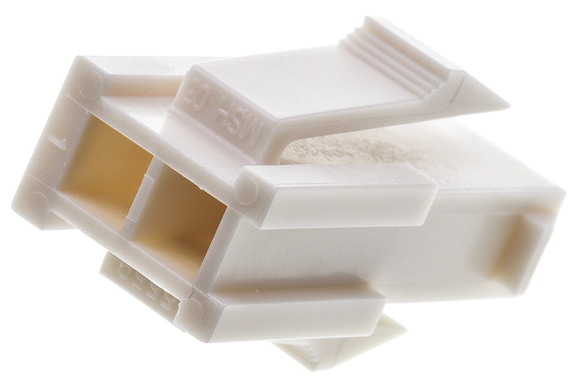This is MINI-FIT JR. Series 4.2mm Pitch 2 Way 2 Row Male Straight Crimp Connector Housing 5559 manufactured by Molex. The manufacturer part number is 39-01-2026. The product is available in cable mount configuration. In addition, male is the available "Gender" of the product. It has straight body orientation. Moreover, the product is 4.2mm. The product also features robust nylon housing material. Furthermore, the product is 11.6mm wide. It comes in 2 of rows. The product mini-fit jr, is a highly preferred choice for users. The product is highly suitable for mini-fit jr. plug. The product contains 2 contacts.