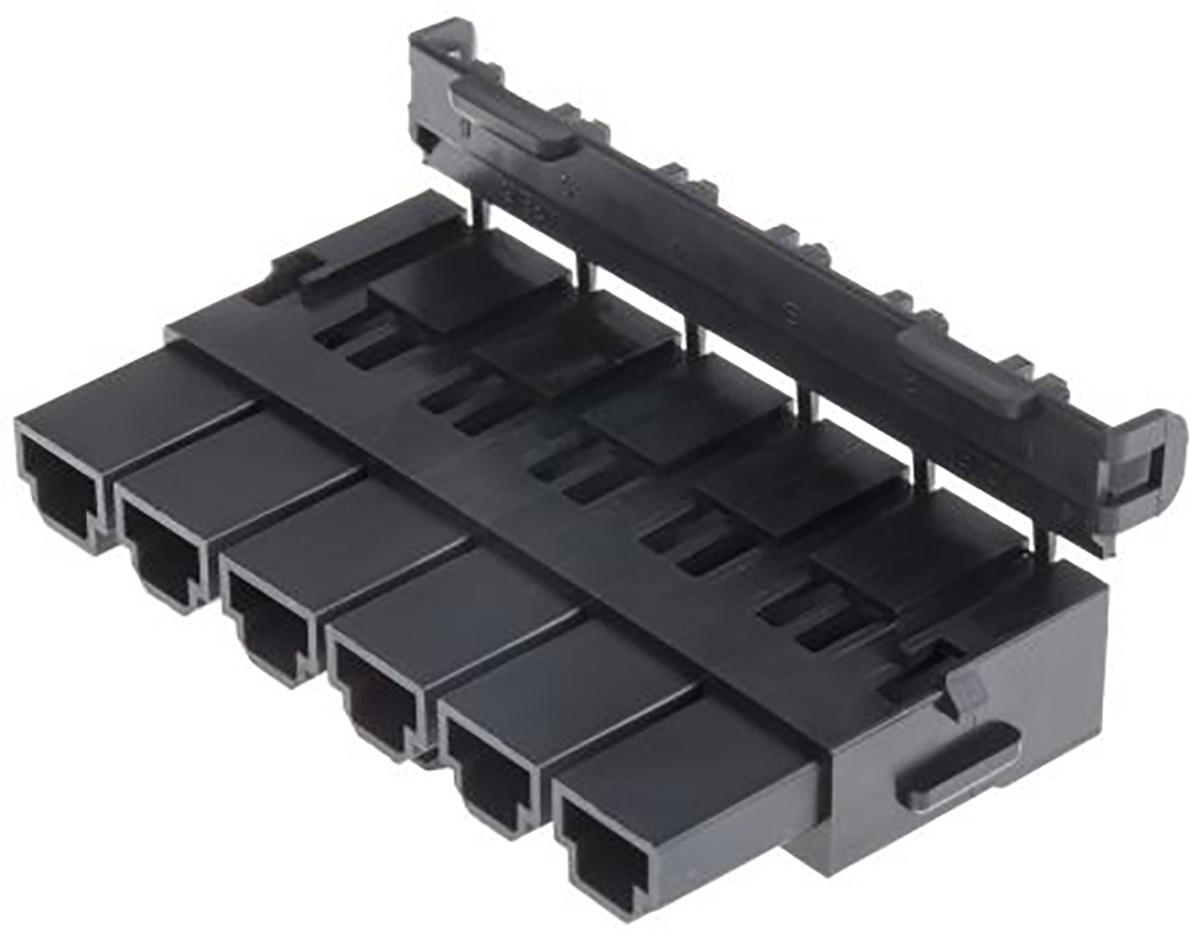 This is Mini-Fit Sr 42816 10mm Pitch 6 Way 1 Row Female Connector Housing manufactured by Molex. The manufacturer part number is 42816-0612. The product is available in cable mount configuration. In addition, female is the available "Gender" of the product. Moreover, the product is 10mm. The product also features robust polyester housing material. Furthermore, the product is 34.4mm wide. Its accurate length is 60.9mm. It comes in 2 of rows. The product mini-fit, is a highly preferred choice for users. The product is highly suitable for 42815 female crimp terminals, terminals position assurance (tpa) clip included. The product contains 6 contacts.