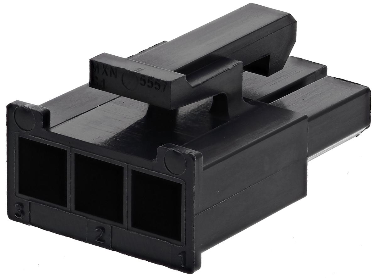 This is Mini-Fit Jr 46994 4.2mm Pitch 3 Way 1 Row Female Connector Housing manufactured by Molex. The manufacturer part number is 50-29-1662. The product is available in cable mount configuration. In addition, female is the available "Gender" of the product. It has straight body orientation. Moreover, the product is 4.2mm. The product also features robust nylon housing material. Furthermore, the product is 10.2mm wide. Its accurate length is 13.8mm. It comes in 1 of rows. The product mini-fit jr, is a highly preferred choice for users. The product is highly suitable for mini-fit female crimp terminal 5556, mini-fit plus hcs crimp terminal 45750. The product contains 3 contacts.