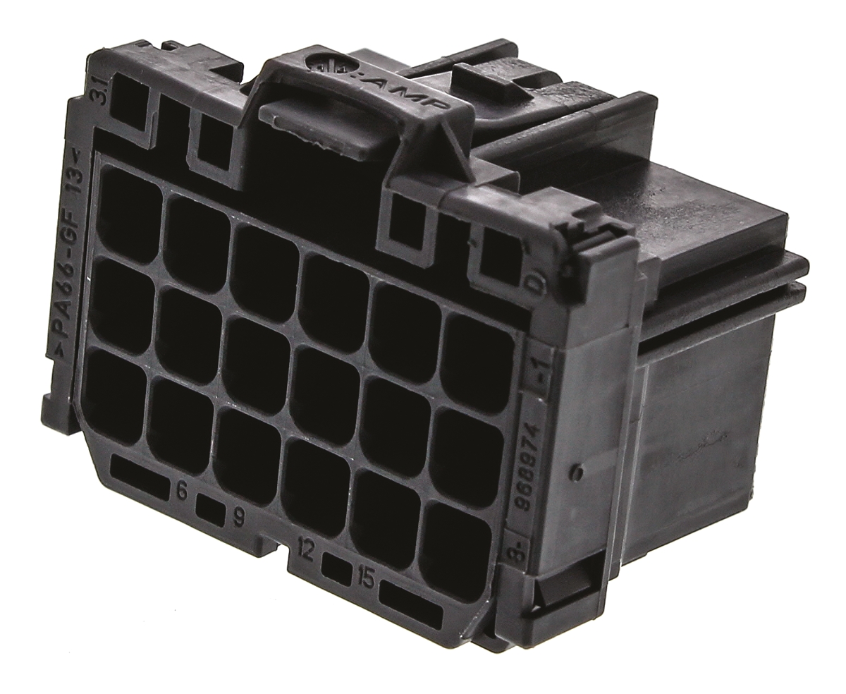 This is AMP MCP 2.8 5.5mm Pitch 18 Way 3 Row Female Connector Housing manufactured by TE Connectivity. The manufacturer part number is 8-968974-1. The product contains 18 contacts. The product has a straight orientation. The product amp mcp 2.8, is a highly preferred choice for users. The product also features robust nylon housing material. Furthermore, the product is 28 mm wide. Its accurate length is 36mm. It comes in 3 of rows. Moreover, the product is 5.5mm. The product is highly suitable for receptacle. automotive connector is a versatile product designed to provide user-defined applications. The connector is of female gender . It has a cable type mount .