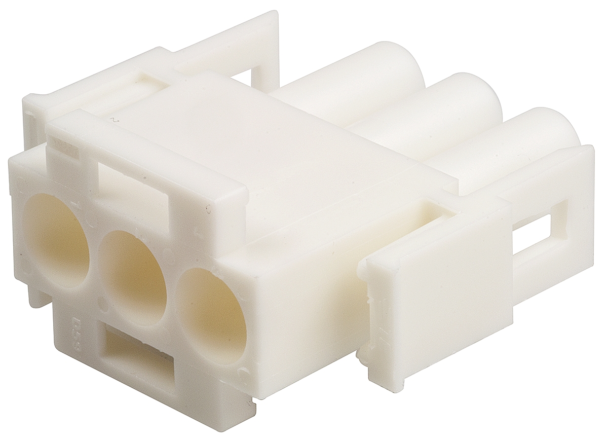 This is Universal MATE-N-LOK 6.35mm Pitch 3 Way 1 Row Male Connector Housing manufactured by TE Connectivity. The manufacturer part number is 350766-4. The product is available in cable mount configuration. In addition, male is the available "Gender" of the product. It has straight body orientation. Moreover, the product is 6.35mm. The product also features robust nylon housing material. Furthermore, the product is 14.73mm wide. It comes in 1 of rows. The product universal mate-n-lok, is a highly preferred choice for users. The product is highly suitable for centerline soft shell pin & socket connector. The product contains 3 contacts.
