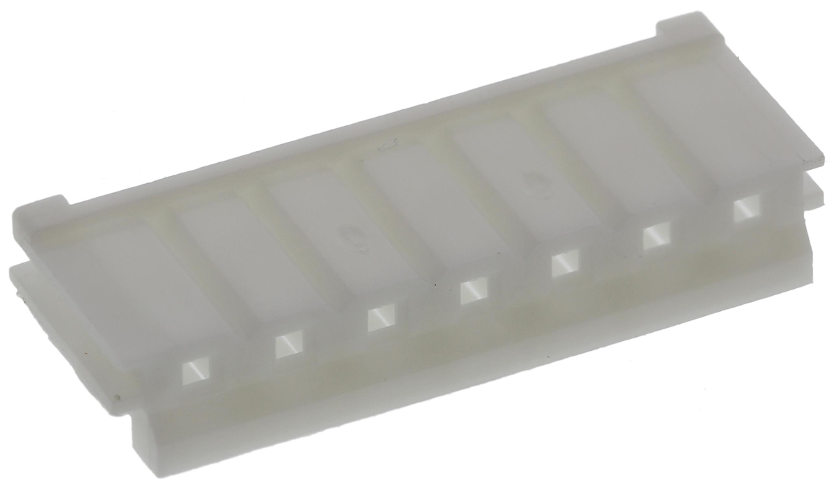 This is EH Series 2.5mm Pitch 7 Way 1 Row Straight PCB Housing manufactured by JST. The manufacturer part number is EHR-7. The product is available in cable mount configuration. In addition, female is the available "Gender" of the product. It has straight body orientation. Moreover, the product is 2.5mm. The product also features robust nylon housing material. Furthermore, the product is 3.8mm wide. Its accurate length is 19.5mm. It comes in 1 of rows. The product eh, is a highly preferred choice for users. The product is highly suitable for disconnectable crimp connector. The product contains 7 contacts.