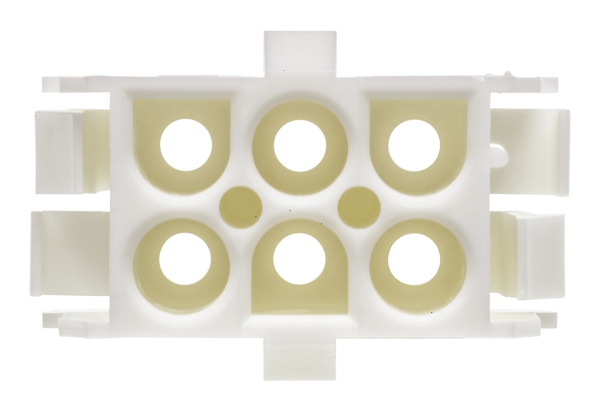 This is Universal MATE-N-LOK Series 6 Way 2 Row Female Straight Crimp Connector Housing manufactured by TE Connectivity. The manufacturer part number is 350781-1. The product is available in cable mount configuration. In addition, female is the available "Gender" of the product. It has straight body orientation. Moreover, the product is 6.35mm. The product also features robust nylon housing material. It comes in 2 of rows. The product universal mate-n-lok, is a highly preferred choice for users. The product is highly suitable for 6.35 mm centerline splash proof sealed connector. The product contains 6 contacts.