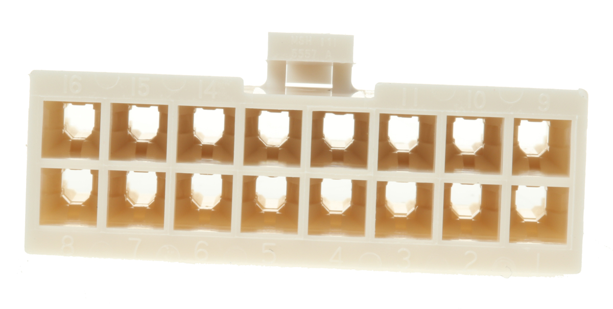 This is Mini-Fit Jr 5557 4.2mm Pitch 16 Way 2 Row Female Connector Housing manufactured by Molex. The manufacturer part number is 39-01-2165. The product is available in cable mount configuration. In addition, female is the available "Gender" of the product. It has straight body orientation. Moreover, the product is 4.2mm. The product also features robust nylon housing material. Furthermore, the product is 15.1mm wide. Its accurate length is 34.8mm. It comes in 2 of rows. The product mini-fit jr, is a highly preferred choice for users. The product is highly suitable for mini-fit jr. receptacle. The product contains 16 contacts.