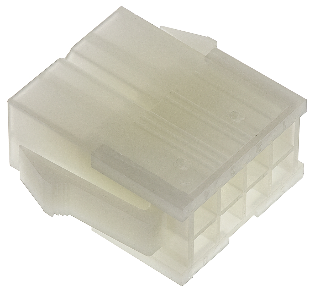 This is Mini-Fit Jr 5559 4.2mm Pitch 8 Way 2 Row Male Connector Housing manufactured by Molex. The manufacturer part number is 39-01-2081. The product is available in cable mount configuration. In addition, male is the available "Gender" of the product. It has straight body orientation. Moreover, the product is 4.2mm. The product also features robust nylon housing material. Furthermore, the product is 12mm wide. Its accurate length is 23.4mm. It comes in 2 of rows. The product mini-fit jr, is a highly preferred choice for users. The product is highly suitable for mini-fit jr. plug. The product contains 8 contacts.