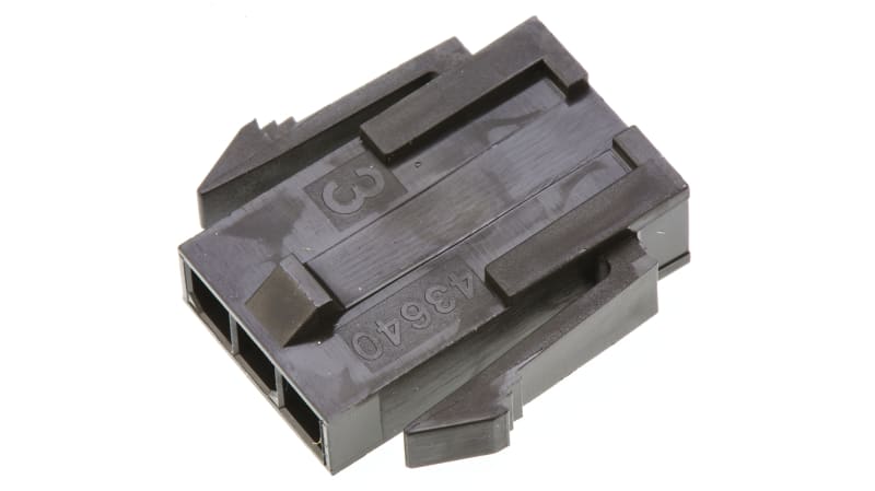 This is MICRO-FIT 3.0 43640 3mm Pitch 3 Way 1 Row Male Connector Housing manufactured by Molex. The manufacturer part number is 43640-0300. The product is available in cable mount configuration. In addition, male is the available "Gender" of the product. It has straight body orientation. Moreover, the product is 3mm. The product also features robust pet housing material. Furthermore, the product is 4.21mm wide. Its accurate length is 13.89mm. It comes in 1 of rows. The product micro-fit 3.0, is a highly preferred choice for users. The product is highly suitable for micro-fit 3.0 plug. The product contains 3 contacts.