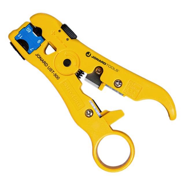 This is manufactured by Jonard Tools. The manufacturer part number is UST-525. The product is rohs3 compliant. It is assigned with possible HTSUS value of 8203.20.6060. It is shipped in bulk package . It is a typical rg6, rg7, rg11, rg59 cable. In addition, it is reach unaffected. Its typical moisture sensitivity level is not applicable. It has a long 2 weeks standard lead time. It comes in multi-level stripper, 2 step configuration. The product is designated with the ear99 code number.