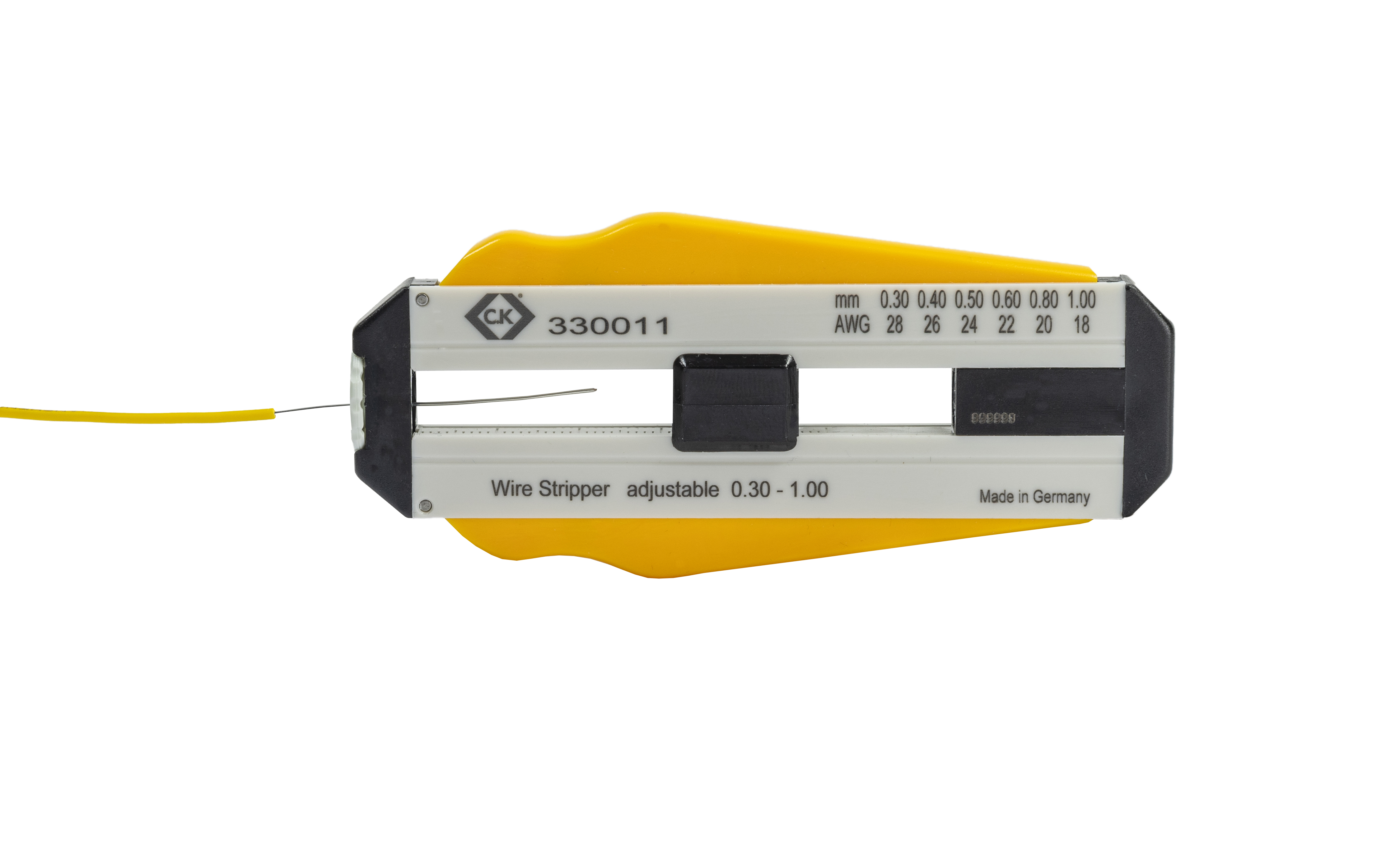 This is Wire Stripper 0.3 → 1mm² manufactured by CK. The manufacturer part number is 330011. However, its stripping range is 0.30, 0.40, 0.50, 0.60, 0.80, 1.0mm . It has an overall length of 98 mm. It is a typical wire cable. It has a maximum 1.0mm size . Moreover, it has a minimum 0.3mm size .