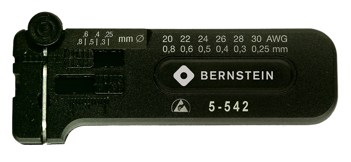 This is Wire Stripper 0.25 → 0.8mm for use with Wire manufactured by Bernstein. The manufacturer part number is 5-542. However, its stripping range is 0.25 → 0.8mm . It is a typical wire cable. It has a maximum 0.8mm size . Moreover, it has a minimum 0.25mm size .
