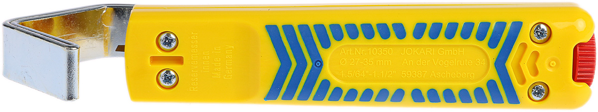 This is Wire Stripper 27 → 35mm manufactured by Jokari. The manufacturer part number is 10350. However, its stripping range is 27 → 35mm . It is a typical multicore cable. It has a maximum 35mm size . Moreover, it has a minimum 27mm size .