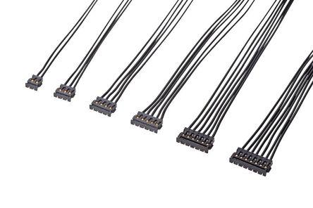 This is PicoEZmate 6 Circuit 300MM manufactured by Molex. The manufacturer part number is 36920-0603. The product has a current rating of 1.5 a. Connector A consists of 6 contacts. Moreover, the product has a nominal 50 vrms ac/dc voltage rating. While the connector B is pico-ezmate. The product pico-ezmate, is a highly preferred choice for users. On the other hand, the gender of connector 1's housing is male. The connector A is pico-ezmate connector. Moreover, connector B consists of 6 contacts. Connector A is a female allowing user-desired applications. The sheath has an adorable black colour. While connector B has a female gender. The high-quality gold is used as contact plating material. Moreover, the product is 1.2mm. Additionally, its connector 2 housing is of male gender . Furthermore, the cable has a 300mm of length. It carries [Serial Number] serial number.