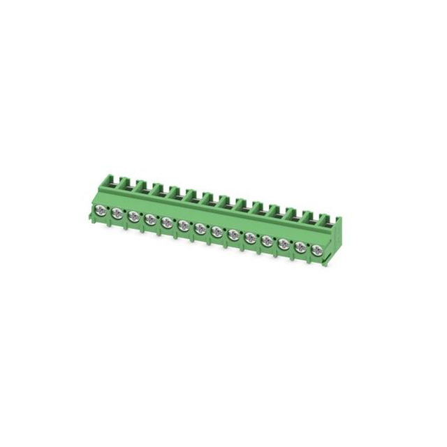 This is manufactured by Phoenix Contact. The manufacturer part number is 1987847. It is assigned with possible HTSUS value of 8536.90.4000. The product is rohs compliant. The product also features robust polyamide (pa), nylon housing material. The wire terminals available include screw. The mating comes in a vertical with board orientation. The product has a m3 screw threads. The phoenix contact's product offers user-desired applications. Moreover, the product has a wire gauge of 12-20 awg. Its typical moisture sensitivity level is 1 (unlimited). It carries torque - screw values of 0.45-0.5 nm (3.9-4.4 lb-in). It has a long 8 weeks standard lead time. Features a 20 a current in A. The product carries 1 levels. The splendid features of the product include interlocking (side). The product is available in through hole configuration. It has a classic green colour. The product combicon pt, is a highly preferred choice for users. It has 14 positions each level. In addition, bulk is the available packaging type of the product. It carries a 300 v of voltage. Moreover, the product is 0.197" (5.00mm). The product is designated with the ear99 code number.