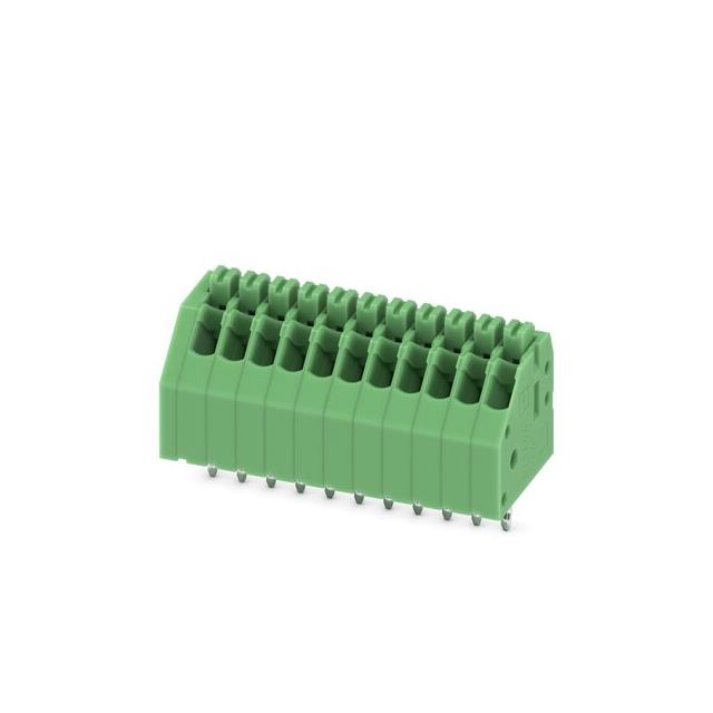 This is manufactured by Phoenix Contact. The manufacturer part number is 1989832. It is assigned with possible HTSUS value of 8536.90.4000. The product is rohs compliant. The product also features robust polyamide (pa), nylon housing material. The product has -40°c ~ 85°c operating temperature range. The wire terminals available include screwless - spring cage, tension clamp. The mating comes in a 45° (135°) angle with board orientation. The phoenix contact's product offers user-desired applications. Moreover, the product has a wire gauge of 20-26 awg. Its typical moisture sensitivity level is 1 (unlimited). It has a long 7 weeks standard lead time. Features a 2 a current in A. The product carries 1 levels. The product is available in through hole configuration. It has a classic green colour. The product combicon ptsa, is a highly preferred choice for users. It has 11 positions each level. In addition, bulk is the available packaging type of the product. It carries a 300 v of voltage. Moreover, the product is 0.098" (2.50mm). The product is designated with the ear99 code number.