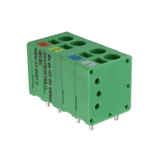 This is manufactured by Phoenix Contact. The manufacturer part number is 1034460. The product has a current rating of 23a. The product is available in pcb mount configuration. In addition, female is the available "Gender" of the product. Moreover, the product is 5mm. It allows pcb termination method. It comes in 1 of rows. The product 5/ 4-v-ex profinet 2, spt 2, is a highly preferred choice for users. The product contains 4 contacts. It is assigned with possible HTSUS value of 8536.90.4000. The product is rohs3 compliant. Features a 20 a current in A. While the contact is copper alloy - tin plated. The mating comes in a vertical with board orientation. In addition, it is reach unaffected. The wire terminals available include screwless - spring cage, tension clamp. It is shipped in box package . Moreover, the product has a wire gauge of 12-24 awg. Its typical moisture sensitivity level is 1 (unlimited). The product carries 1 levels. It has a long 10 weeks standard lead time. The product also features robust polyamide (pa), nylon housing material. The product is available in through hole configuration. It has a classic green colour. The product combicon spt, is a highly preferred choice for users. It has 4 positions each level. It carries a 300 v of voltage. Moreover, the product is 0.197" (5.00mm). The product is designated with the ear99 code number.