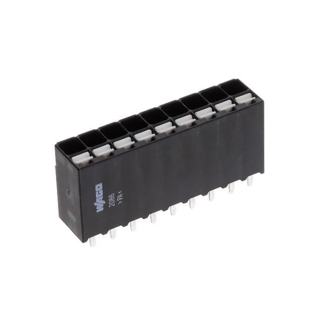 This is manufactured by WAGO Corporation. The manufacturer part number is 2086-1109. It is assigned with possible HTSUS value of 8536.90.4000. The product is rohs3 compliant. Features a 10 a current in A. The product has -60°c ~ 105°c operating temperature range. While the contact is electrolytic copper - tin plated. The mating comes in a vertical with board orientation. In addition, it is reach unaffected. The wire terminals available include screwless - push button clamp. Moreover, the product has a wire gauge of 16-24 awg. The clamp is designed from robust materials including steel - nickel plated. Its typical moisture sensitivity level is 1 (unlimited). It has a long 8 weeks standard lead time. The product also features robust polyphthalamide (ppa), glass filled housing material. The product carries 1 levels. The splendid features of the product include push button actuated. The product is available in through hole configuration. It has a classic black colour. The product 2086, is a highly preferred choice for users. It has 9 positions each level. In addition, tray is the available packaging type of the product. It carries a 300 v of voltage. Moreover, the product is 0.138" (3.50mm). The wago corporation's product offers user-desired applications. The product is designated with the ear99 code number.