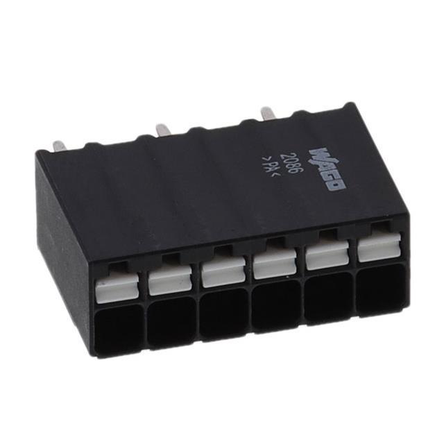 This is manufactured by WAGO Corporation. The manufacturer part number is 2086-1126. It is assigned with possible HTSUS value of 8536.90.4000. The product is rohs3 compliant. Features a 10 a current in A. The product has -60°c ~ 105°c operating temperature range. The wire terminals available include screwless - push button clamp. While the contact is electrolytic copper - tin plated. The mating comes in a vertical with board orientation. In addition, it is reach unaffected. The wago corporation's product offers user-desired applications. Moreover, the product has a wire gauge of 16-24 awg. The clamp is designed from robust materials including steel - nickel plated. Its typical moisture sensitivity level is 1 (unlimited). It has a long 8 weeks standard lead time. The product also features robust polyphthalamide (ppa), glass filled housing material. The product carries 1 levels. The splendid features of the product include push button actuated. The product is available in through hole configuration. It has a classic black colour. The product 2086, is a highly preferred choice for users. It has 6 positions each level. In addition, tray is the available packaging type of the product. It carries a 300 v of voltage. Moreover, the product is 0.138" (3.50mm). The product is designated with the ear99 code number.