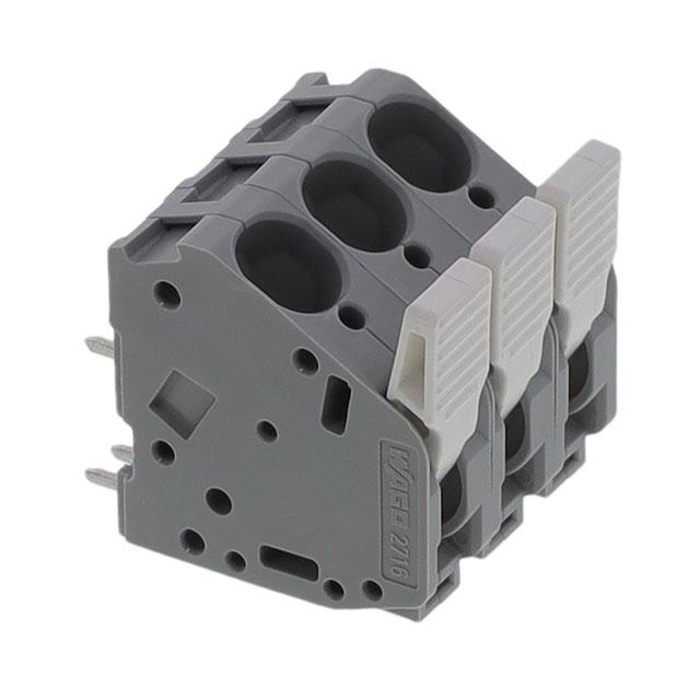 This is manufactured by WAGO Corporation. The manufacturer part number is 2716-103. It is assigned with possible HTSUS value of 8536.90.4000. The product is rohs3 compliant. Features a 55 a current in A. The product has -60°c ~ 105°c operating temperature range. While the contact is electrolytic copper - tin plated. The mating comes in a horizontal with board orientation. In addition, it is reach unaffected. The wire terminals available include screwless - leg spring, push-in spring. It is shipped in box package . Moreover, the product has a wire gauge of 6-16 awg. The clamp is designed from robust materials including steel - nickel plated. Its typical moisture sensitivity level is 1 (unlimited). The product carries 1 levels. It has a long 12 weeks standard lead time. The product also features robust polyamide (pa66), nylon 6/6 housing material. The splendid features of the product include lever actuated. The product is available in through hole configuration. It has a classic gray colour. The product 2716, is a highly preferred choice for users. It has 3 positions each level. It carries a 300 v of voltage. Moreover, the product is 0.394" (10.00mm). The product is designated with the ear99 code number.