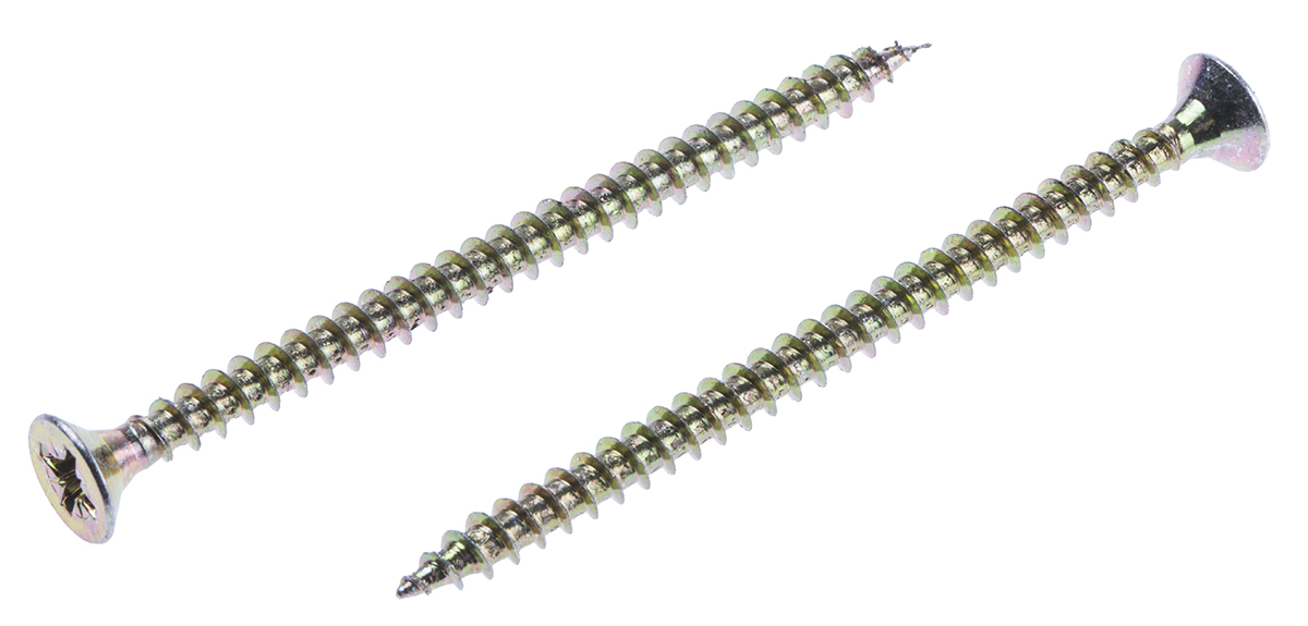 This is Yellow Passivated Zinc Plated Steel Countersunk Wood Screw 4.5mm x 70mm manufactured by RS Pro. The manufacturer part number is 263-1915. A quality product with a nice yellow passivated, zinc plated finish. The head has a countersunk shape. The product features a pozidriv drive. The product is made from highly stable and reliable steel. It has a typical thread size of 4.5mm. Furthermore, it has about 70mm metric length .