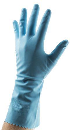 This is Blue Chemical Resistant Rubber Reusable Gloves 7 - S manufactured by RS Pro. The manufacturer part number is 508-1414. It complies with EN407 Thermal standards no . It is compliant with EN374 Chemical standard yes . Whereas, its glove coating is of no coating . It has 1 EN388 tear standard . It includes 24 gloves . It complies with EN511 Cold no . The main colour of the glove is blue . The primary recommended applications for the glove is chemical resistant . It has 1 EN288 abrasion standard . Additionally, its glove is made using rubber material . The glove has a 7 size.
