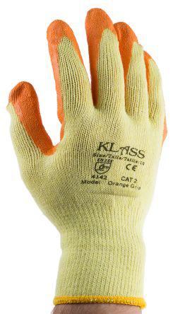 This is Orange General Purpose Cotton Latex-Coated Reusable Gloves 10 - L manufactured by RS Pro. The manufacturer part number is 869-1538. It complies with EN407 Thermal standards no . It is compliant with EN374 Chemical standard no . It has a/an 1 EN 388 blade standard . It has 4 EN388 tear standard . It complies with EN511 Cold no . The main colour of the glove is orange . It has 2 EN388 Puncture standard . The primary recommended applications for the glove is general purpose . It has 4 EN288 abrasion standard . Additionally, its glove is made using cotton material . The glove has a 10 size. Whereas, its glove coating is of latex .