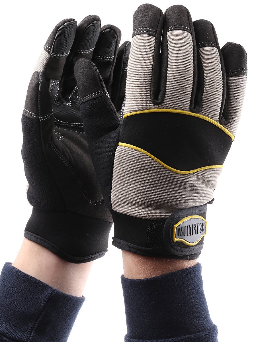 This is Multi-Task 5 Black General Purpose Leather Nylon Spandex Reusable Gloves 8 - S manufactured by BM Polyco. The manufacturer part number is MT5/08. It complies with EN407 Thermal standards no . It is compliant with EN374 Chemical standard no . It has a/an 1 EN 388 blade standard . It has 4 EN388 tear standard . It includes 1pair gloves . It complies with EN511 Cold no . The main colour of the glove is black . The primary recommended applications for the glove is general purpose . It has 1 EN388 Puncture standard . It features multi-task 5 range. It has 2 EN288 abrasion standard . Additionally, its glove is made using leather, nylon, spandex material . The glove has a 8, medium size. The product complies with EN 61340-5-1 standard no . Whereas, its glove coating is of no coating .