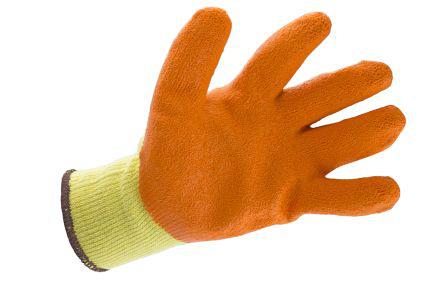 This is Orange General Purpose Cotton Latex-Coated Reusable Gloves 9 - M manufactured by RS Pro. The manufacturer part number is 869-1534. It complies with EN407 Thermal standards no . It is compliant with EN374 Chemical standard no . It has a/an 1 EN 388 blade standard . It has 4 EN388 tear standard . It complies with EN511 Cold no . The main colour of the glove is orange . It has 2 EN388 Puncture standard . The primary recommended applications for the glove is general purpose . It has 4 EN288 abrasion standard . Additionally, its glove is made using cotton material . The glove has a 9 size. Whereas, its glove coating is of latex .