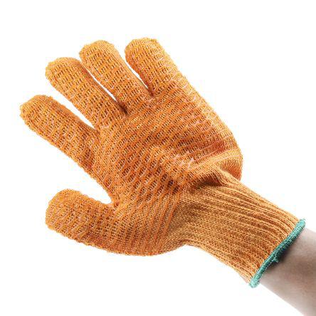 This is Orange General Purpose PVC PVC-Coated Reusable Gloves One Size manufactured by RS Pro. The manufacturer part number is 508-1408. It complies with EN407 Thermal standards no . It is compliant with EN374 Chemical standard no . It has a/an 1 EN 388 blade standard . It has 3 EN388 tear standard . It includes 10 gloves . It complies with EN511 Cold no . The main colour of the glove is orange . It has 1 EN388 Puncture standard . The primary recommended applications for the glove is general purpose . It has 1 EN288 abrasion standard . Additionally, its glove is made using pvc material . The glove has a one size size. Whereas, its glove coating is of pvc .