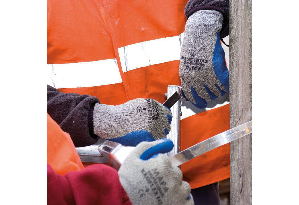 This is Kroflex 840 Blue Cut Resistant Latex Latex-Coated Reusable Gloves 9 manufactured by Mapa Spontex. The manufacturer part number is 840019. It complies with EN407 Thermal standards no . It is compliant with EN374 Chemical standard no . Whereas, its glove coating is of latex . It has 4 EN388 tear standard . It includes 1pair gloves . It complies with EN511 Cold no . The main colour of the glove is grey . The primary recommended applications for the glove is cut resistant, heat resistant . It has 3 EN388 Puncture standard . It features krytech 840 h/d cut/level 5 size 9 range. It has 3 EN288 abrasion standard . Additionally, its glove is made using latex material . The glove has a 9, large size. The product complies with EN 61340-5-1 standard no .