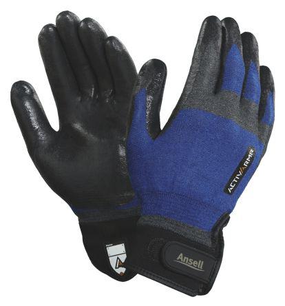 This is Reusable Gloves ActivArmr Nitrile-Coated Kevlar Black Cut Resistant 10 manufactured by Ansell. The manufacturer part number is 97-002-10. It complies with EN407 Thermal standards no . It is compliant with EN374 Chemical standard no . It has a/an 3 EN 388 blade standard . It has 2 EN388 tear standard . It includes 2 gloves . It complies with EN511 Cold no . The main colour of the glove is black . The primary recommended applications for the glove is cut resistant . It has 1 EN388 Puncture standard . It features activarmr range. It has 4 EN288 abrasion standard . Additionally, its glove is made using kevlar material . The glove has a 10 size. Whereas, its glove coating is of nitrile .