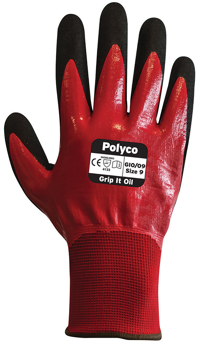 This is Grip It Orange General Purpose Nylon Nitrile-Coated Gripper Gloves 8 manufactured by BM Polyco. The manufacturer part number is GIO/08. It complies with EN407 Thermal standards no . It is compliant with EN374 Chemical standard no . It has a/an 1 EN 388 blade standard . It has 2 EN388 tear standard . It includes 10pairs gloves . It complies with EN511 Cold no . The main colour of the glove is red . The primary recommended applications for the glove is general purpose . It has 2 EN388 Puncture standard . It features grip it range. It has 4 EN288 abrasion standard . Additionally, its glove is made using nitrile material . The glove has a 8, medium size. The product complies with EN 61340-5-1 standard no . Whereas, its glove coating is of nitrile foam .