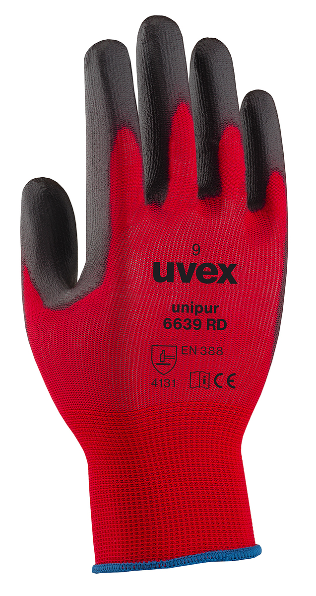 This is Unipur Polyamide Polyurethane-Coated General Purpose Gloves size 11 Red manufactured by Uvex. The manufacturer part number is 60963 11. It complies with EN407 Thermal standards no . It is compliant with EN374 Chemical standard no . It has a/an 1 EN 388 blade standard . It has 3 EN388 tear standard . It includes 2 gloves . It complies with EN511 Cold no . The main colour of the glove is red . The primary recommended applications for the glove is general purpose . Moreover, it is suitable for mechanical hazards EN388 en388 . It has 1 EN388 Puncture standard . It features unipur 6639 rd range. It has 4 EN288 abrasion standard . Additionally, its glove is made using polyamide material . The glove has a 11, xl size. Whereas, its glove coating is of polyurethane .