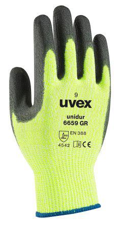 This is Unidur Elastane Glass Polyamide HPPE Polyurethane-Coated Cut Resistant Gloves size 11 Green manufactured by Uvex. The manufacturer part number is 60964 11. It complies with EN407 Thermal standards no . It is compliant with EN374 Chemical standard no . It has a/an 5 EN 388 blade standard . It has 4 EN388 tear standard . It includes 2 gloves . It complies with EN511 Cold no . The main colour of the glove is green . The primary recommended applications for the glove is cut resistant . Moreover, it is suitable for mechanical hazards EN388 en388 . It has 2 EN388 Puncture standard . It features unidur 6659 gr range. It has 4 EN288 abrasion standard . Additionally, its glove is made using elastane, glass polyamide, hppe material . The glove has a 11, xl size. Whereas, its glove coating is of polyurethane .