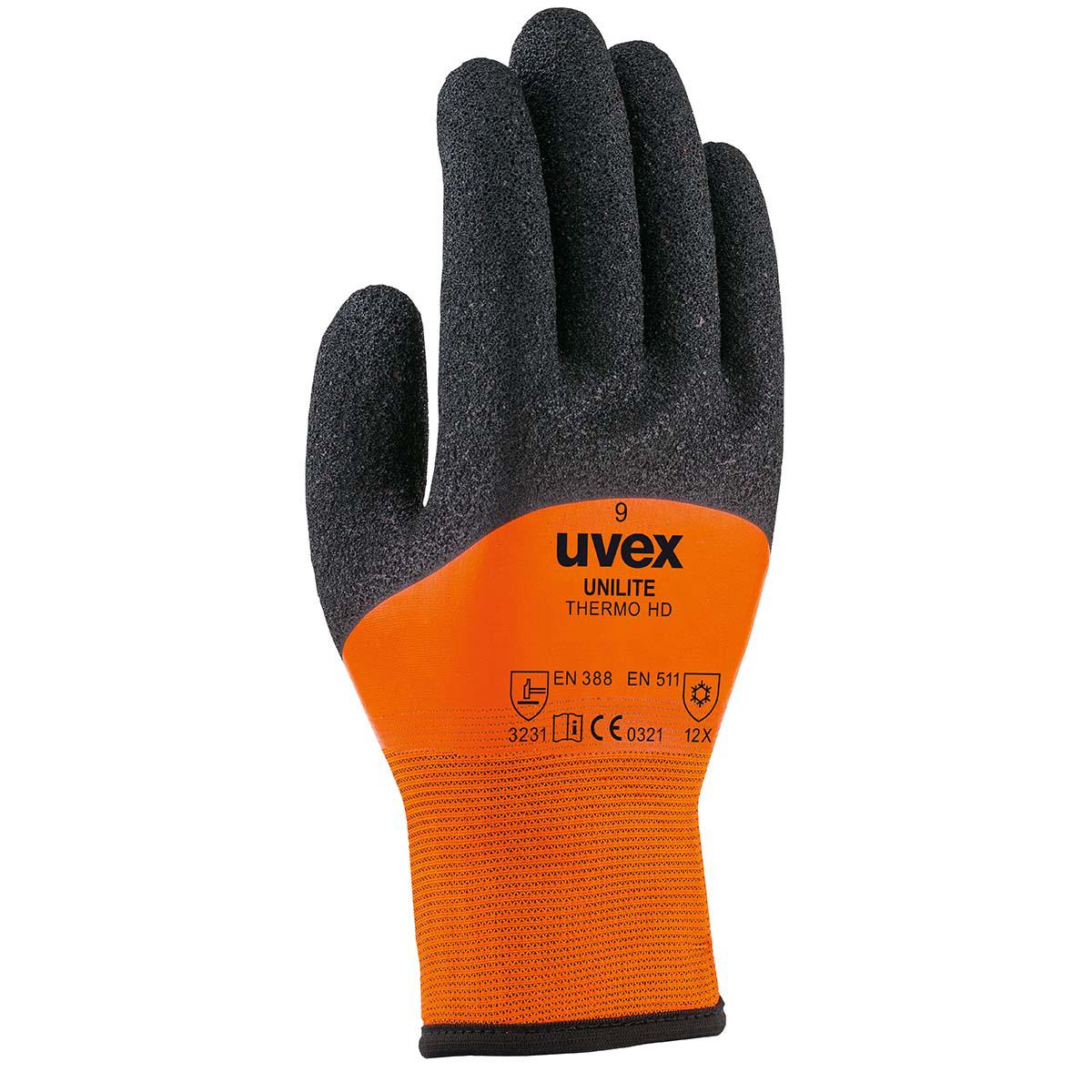 This is uvex unilite thermo HD / 60942 manufactured by Uvex. The manufacturer part number is 60942 9. It complies with EN407 Thermal standards no . It is compliant with EN374 Chemical standard no . It has a/an 2 EN 388 blade standard . It has 3 EN388 tear standard . It includes 2 gloves . It complies with EN511 Cold yes . The main colour of the glove is orange . The primary recommended applications for the glove is thermal . Moreover, it is suitable for mechanical hazards EN388 en388 . It has 1 EN388 Puncture standard . It features unilite thermo hd range. It has 3 EN288 abrasion standard . Additionally, its glove is made using acrylic, cotton terry, nylon material . The glove has a 9, large size. Whereas, its glove coating is of pvc .